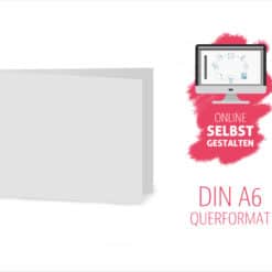 Hochwertige Hochzeitseinladungen müssen nicht immer teuer sein. Nutzen Sie unseren Online-Konfigurator und gestalten Ihre Einladungskarte im Format DIN A6 (Querformat) selbst online.